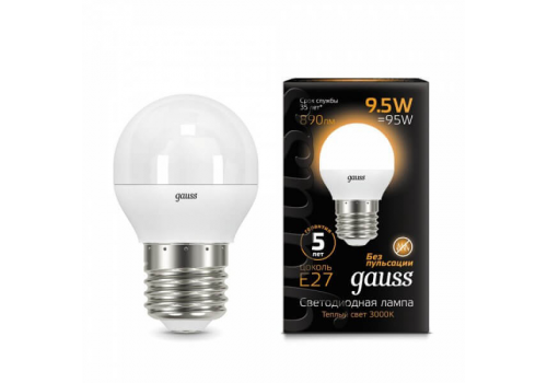 Лампа светодиодная Gauss E27 9.5W 3000K матовая 105102110