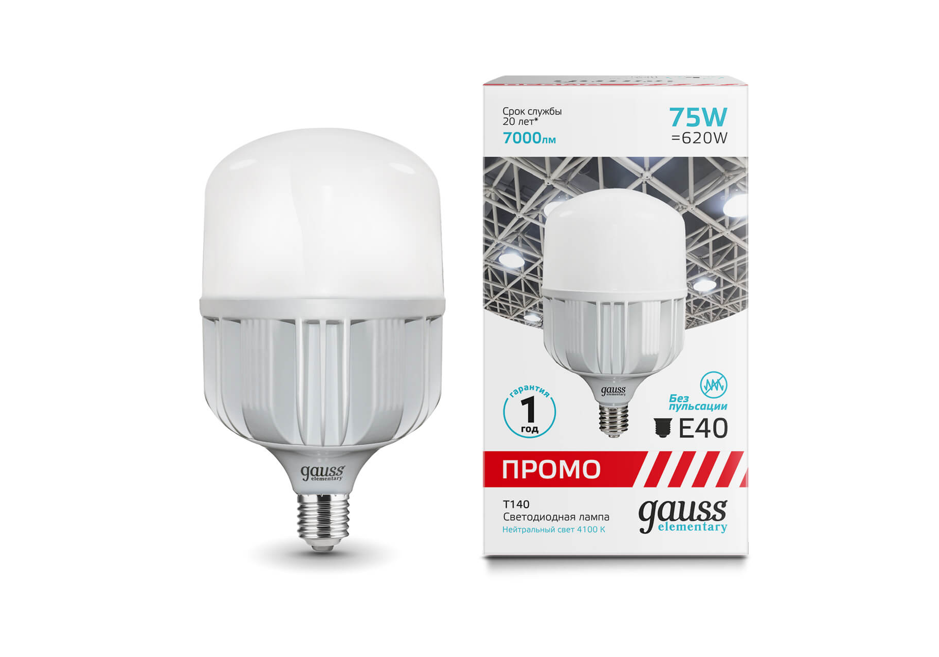 Лампа светодиодная Gauss E40 75W 4100K матовая 60428