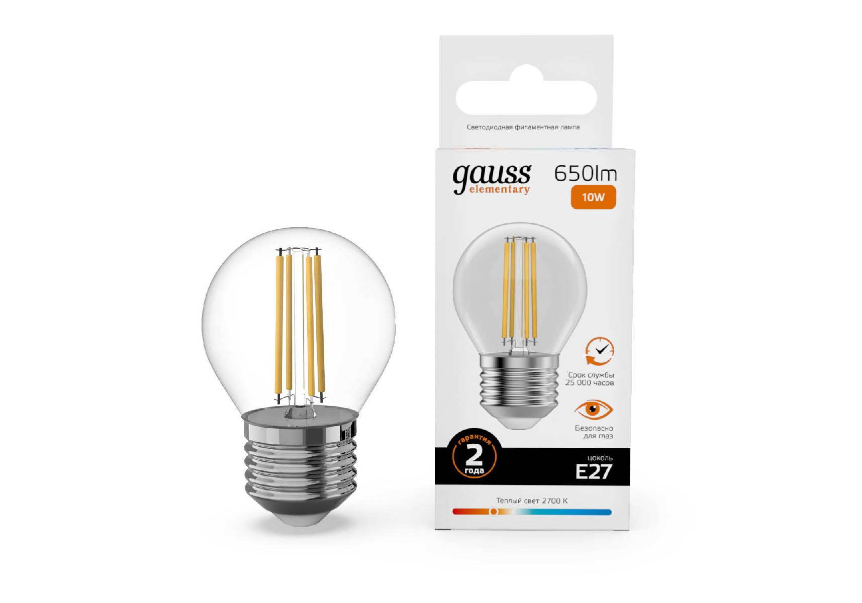 Лампа светодиодная Gauss Filament Elementary E27 10W 2700K 52210