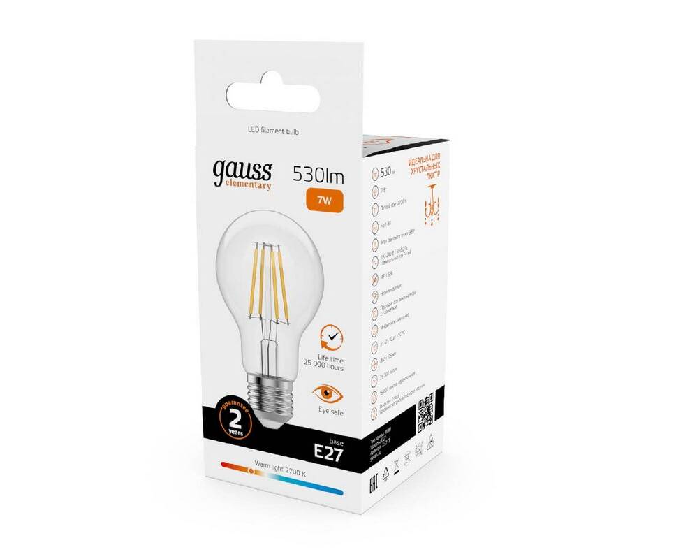 Лампа светодиодная Gauss Filament Elementary E27 7W 2700K 22217