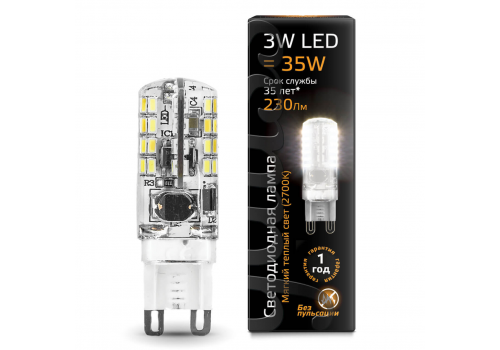 Лампа светодиодная Gauss G9 3W 2700K прозрачная 107709103