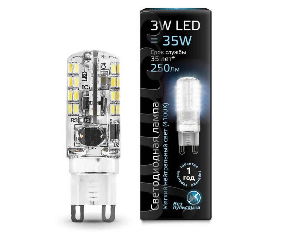 Лампа светодиодная Gauss G9 3W 4100K прозрачная 107709203