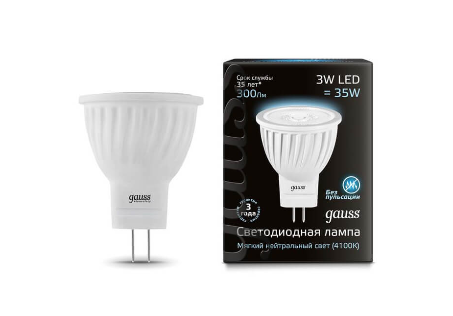 Лампа светодиодная Gauss GU4 3W 4100K матовая 132517203