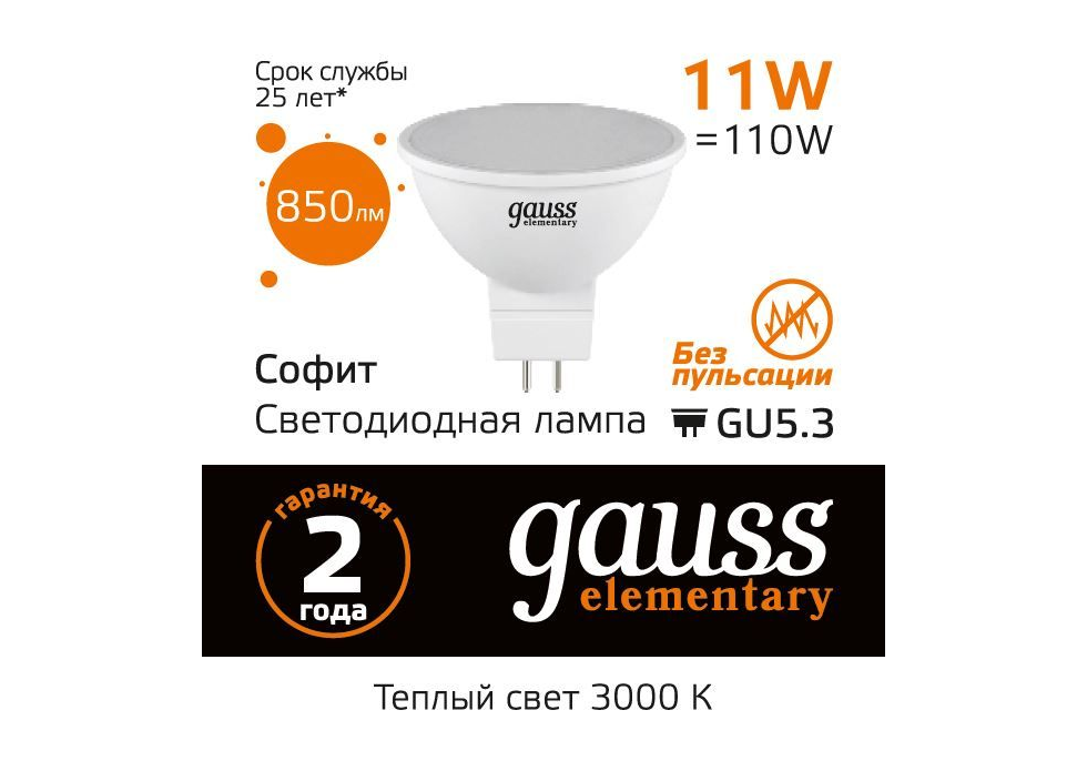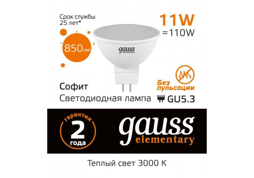 Лампа светодиодная Gauss GU5.3 11W 3000K матовая 13511
