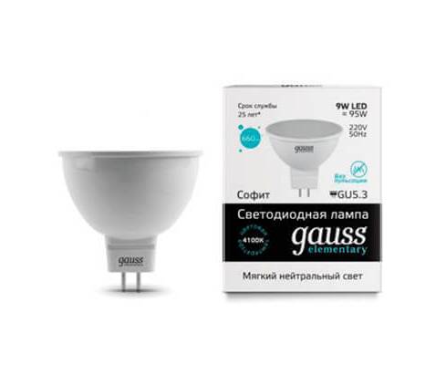 Лампа светодиодная Gauss GU5.3 9W 4100K матовая 13529