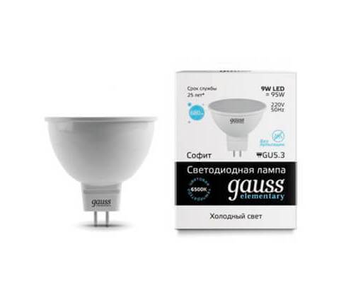 Лампа светодиодная Gauss GU5.3 9W 6500K матовая 13539