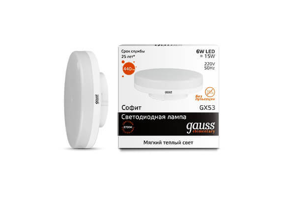 Лампа светодиодная Gauss GX53 6W 3000K матовая 83816