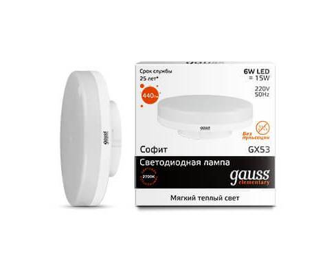 Лампа светодиодная Gauss GX53 6W 3000K матовая 83816
