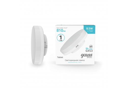 Лампа светодиодная Gauss GX53 8,5W 4100К матовая 20849292