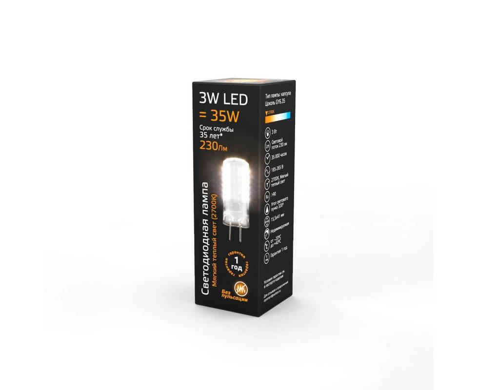 Лампа светодиодная Gauss GY6.35 3W 2700K прозрачная 107719103