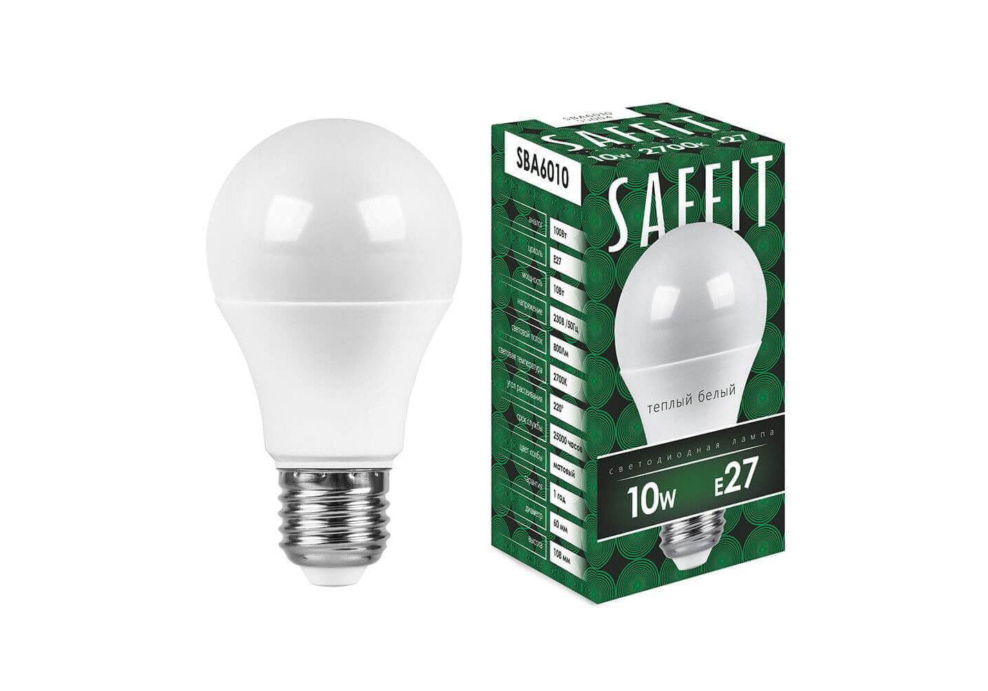 Лампа светодиодная Saffit E27 10W 2700K Шар Матовая SBA6010 55004