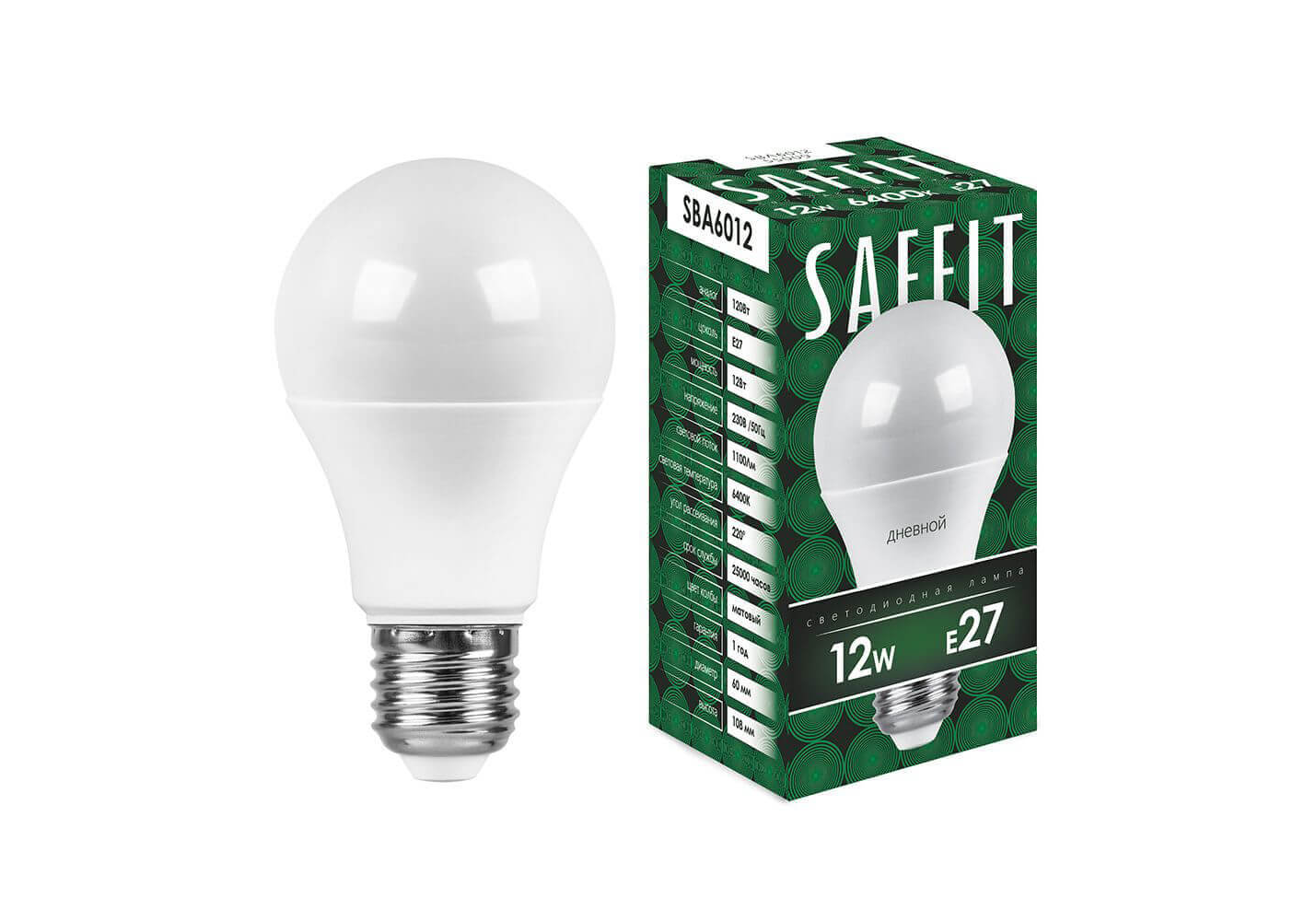 Лампа светодиодная Saffit E27 12W 6400K Шар Матовая SBA6012 55009
