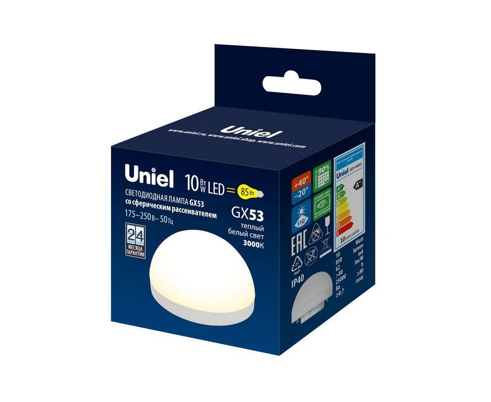 Лампа светодиодная Uniel GX53 10W 3000K матовая LED-GX53-10W/3000K/GX53/FR/SPHERE PLZ02WH UL-00011787