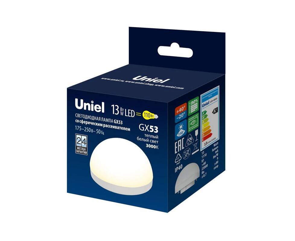 Лампа светодиодная Uniel GX53 13W 3000K матовая LED-GX53-13W/3000K/GX53/FR/SPHERE PLZ02WH UL-00011790