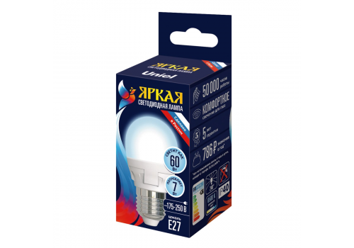Лампа светодиодная Uniel LED-G45 7W/6500K/E27/FR PLP01WH UL-00011017