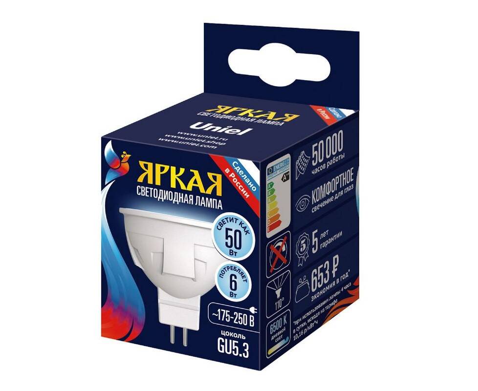 Лампа светодиодная Uniel Яркая LED-JCDR 6W/6500K/GU5.3/FR PLP01WH UL-00011019