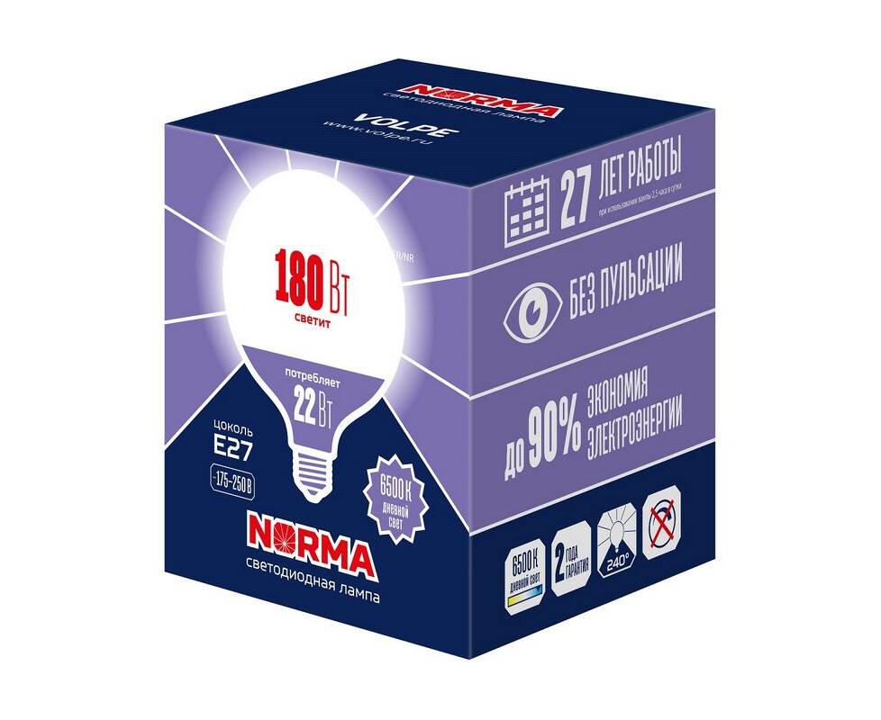 Лампа светодиодная Volpe E27 22W 6500K матовая LED-G120-22W/6500K/E27/FR/NR UL-00010996