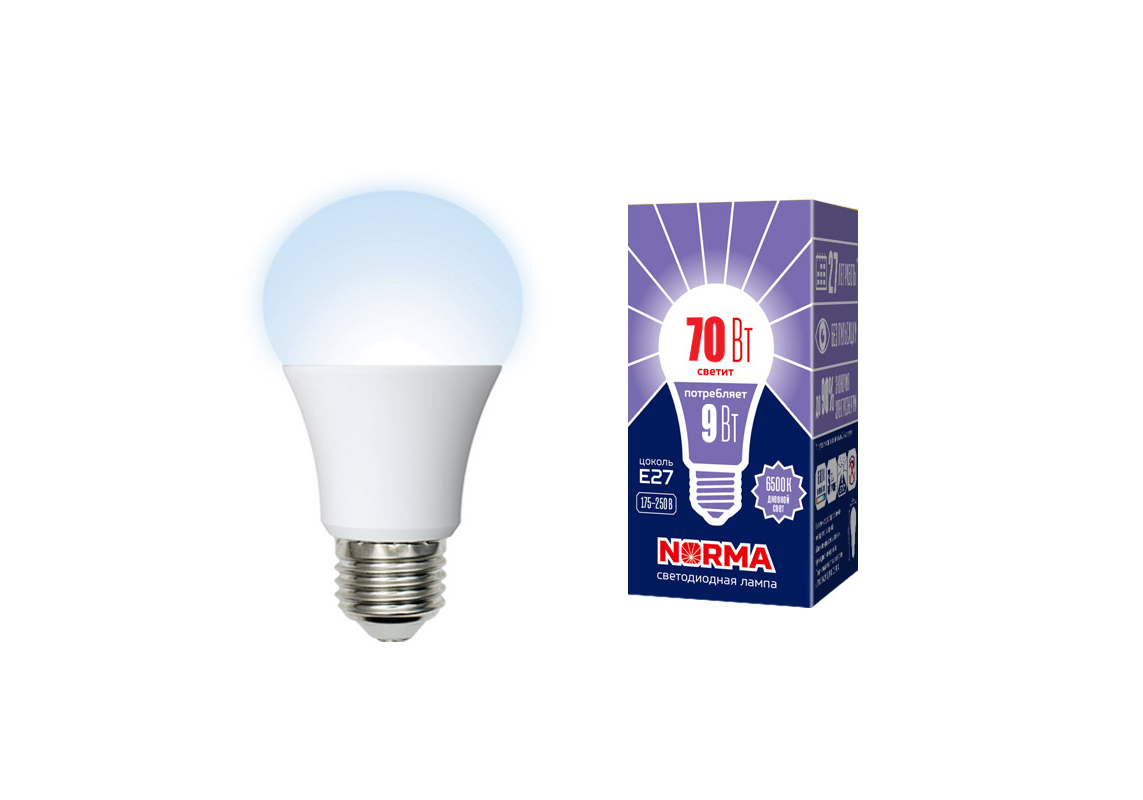 Лампа светодиодная Volpe Norma LED-A60-9W/6500K/E27/FR/NR картон UL-00005624