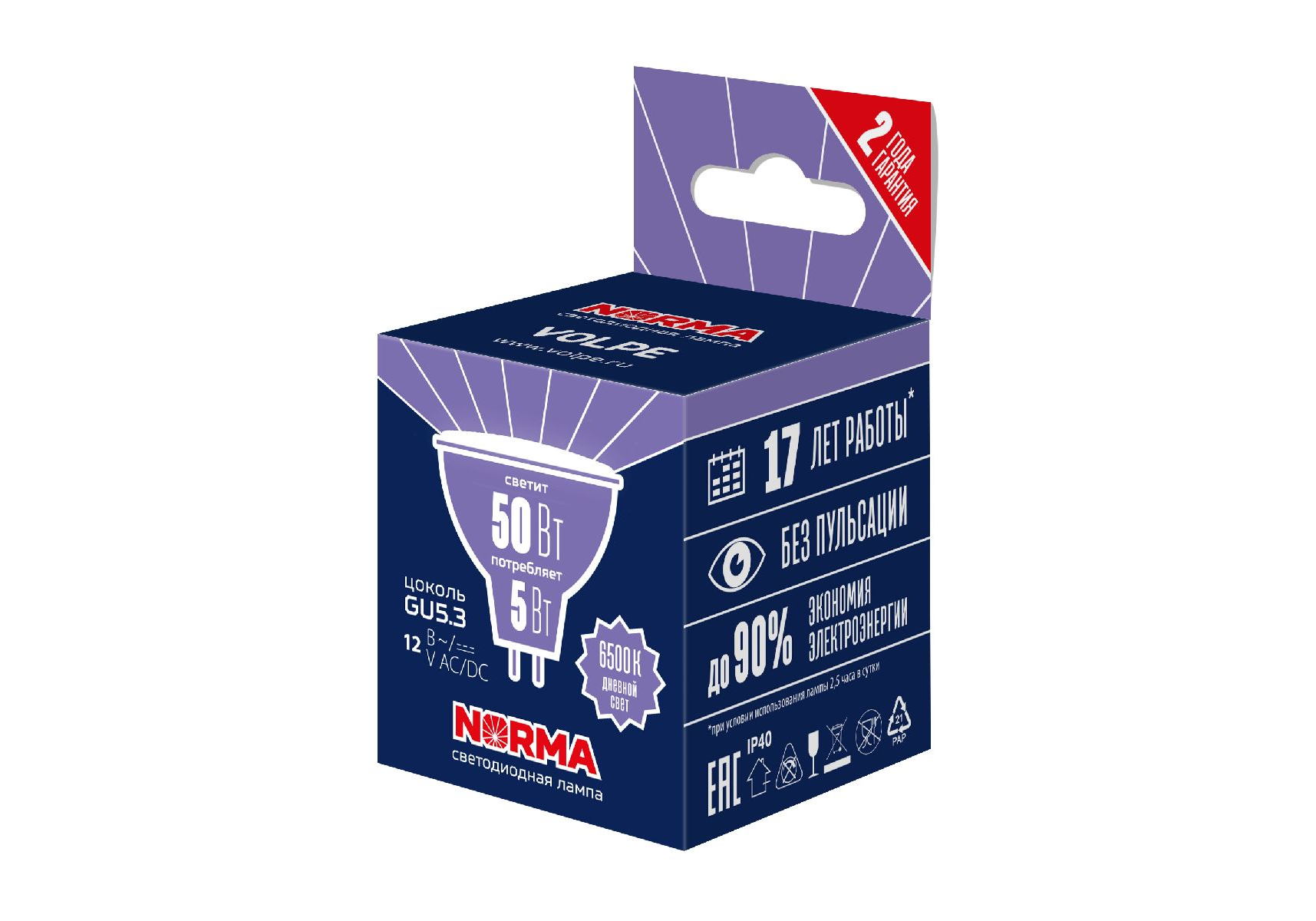Лампа светодиодная Volpe Norma LED-MR16-5W/6500K/GU5.3/FR/NR UL-00011013