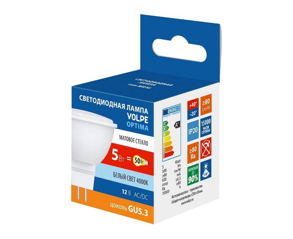 Лампа светодиодная Volpe Optima LED-MR16-5W/4000K/GU5.3/FR/SLS UL-00008839
