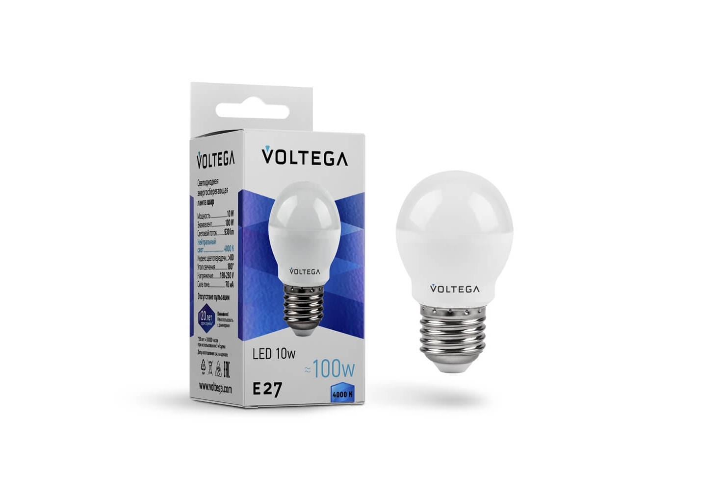 Лампа светодиодная Voltega E27 10W 4000K матовая 8456