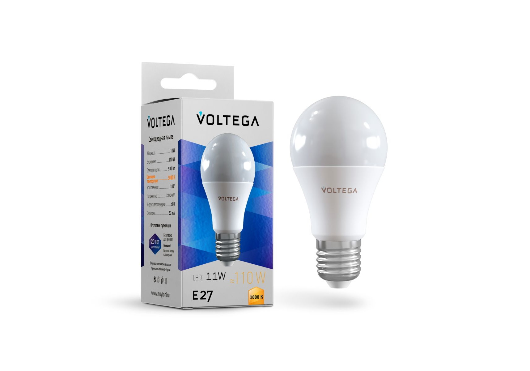 Лампа светодиодная Voltega E27 11W 3000K груша 7245