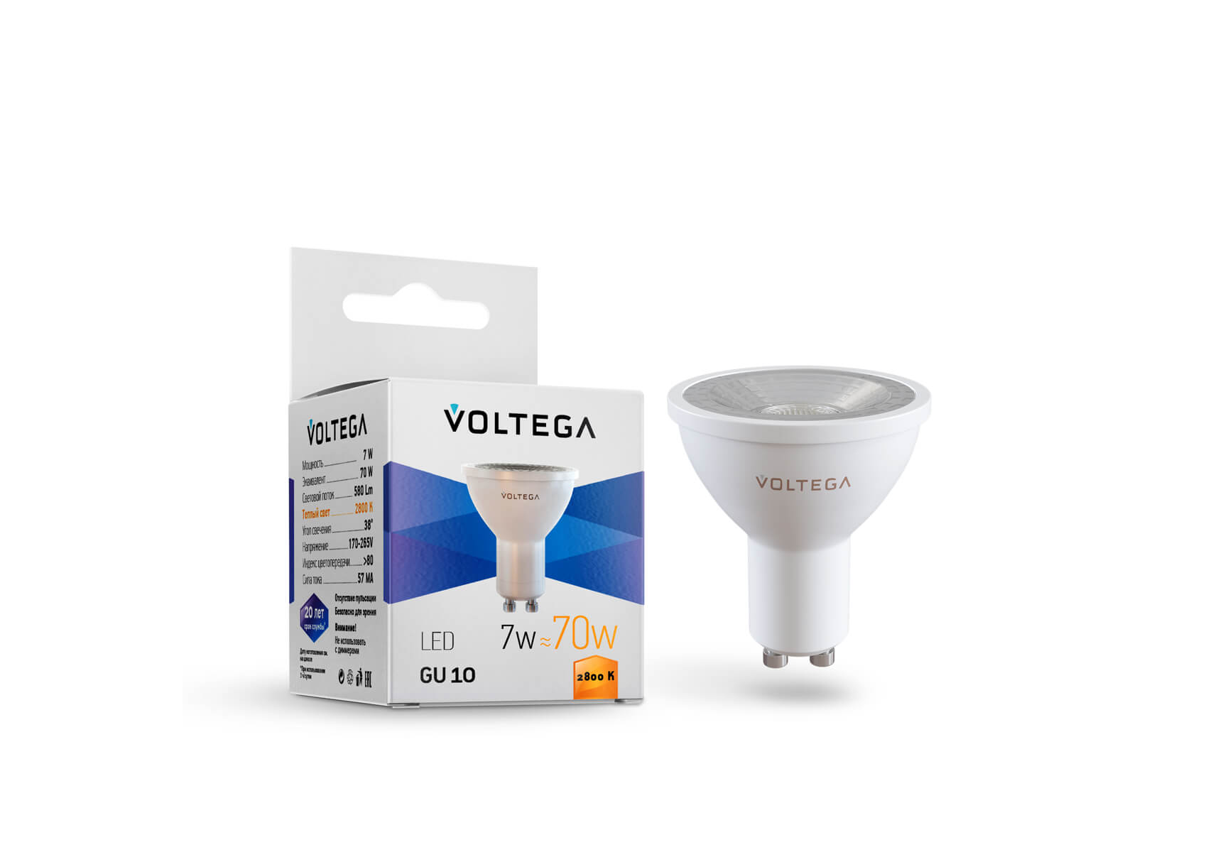 Лампа светодиодная Voltega GU10 7W 2800К прозрачная 7060