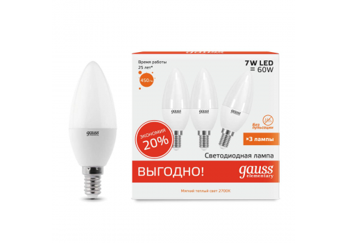 Набор светодиодных ламп Gauss E14 7W 2700K матовая 33117T