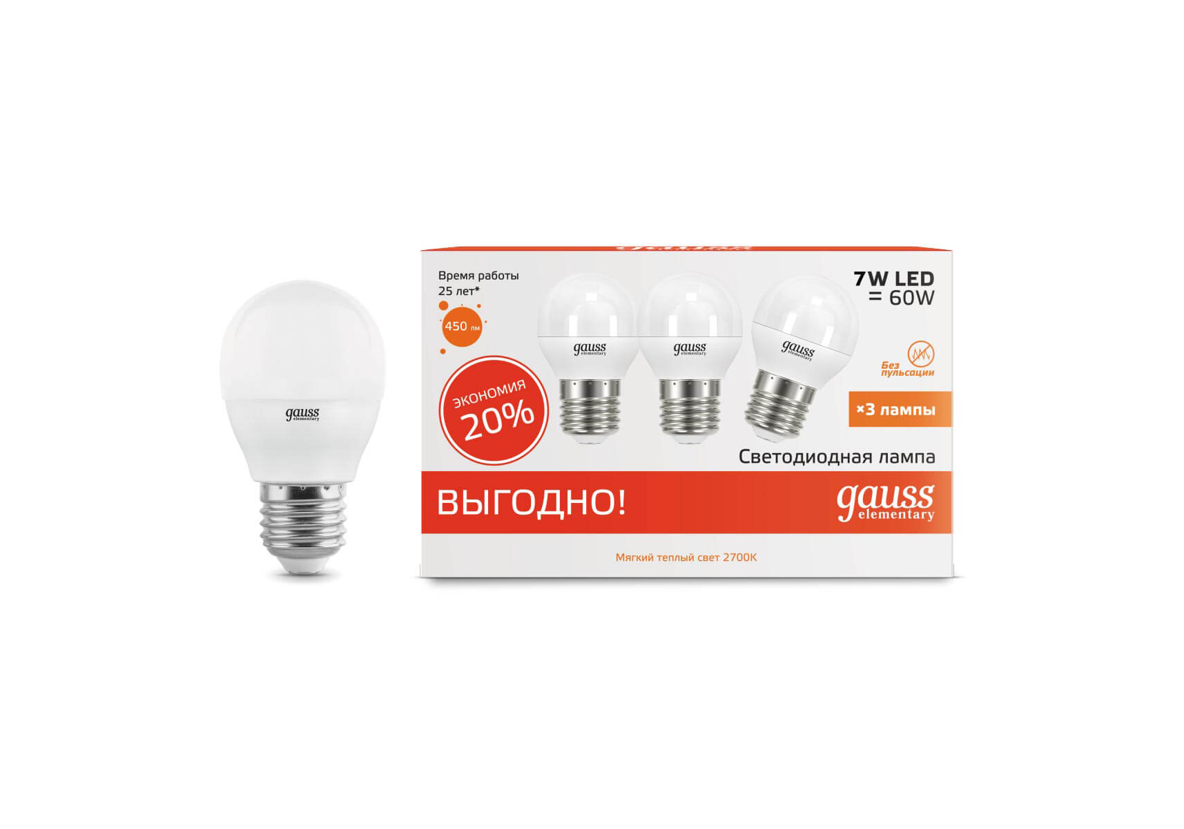 Набор светодиодных ламп Gauss E27 7W 2700K матовая 53217T