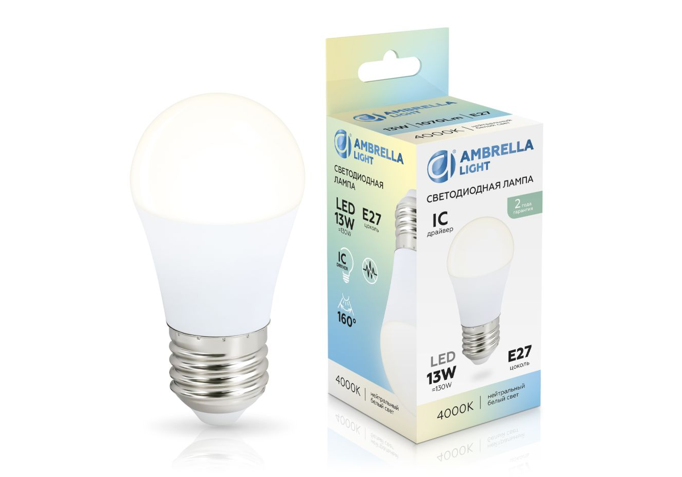 Светодиодная лампа Ambrella Light Bulbing E27 13W 4000K шар 451304