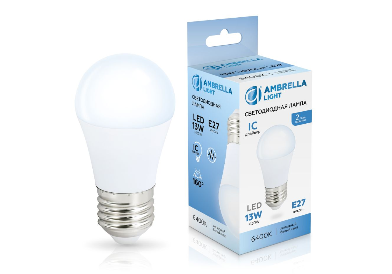 Светодиодная лампа Ambrella Light Bulbing E27 13W 6400K шар 451306