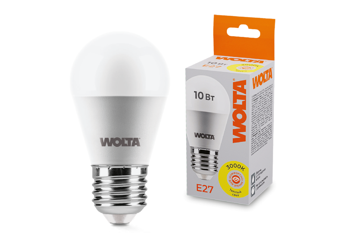 Светодиодная лампа WOLTA 10Вт 3000K E27 груша матовая 25Y45GL10E27