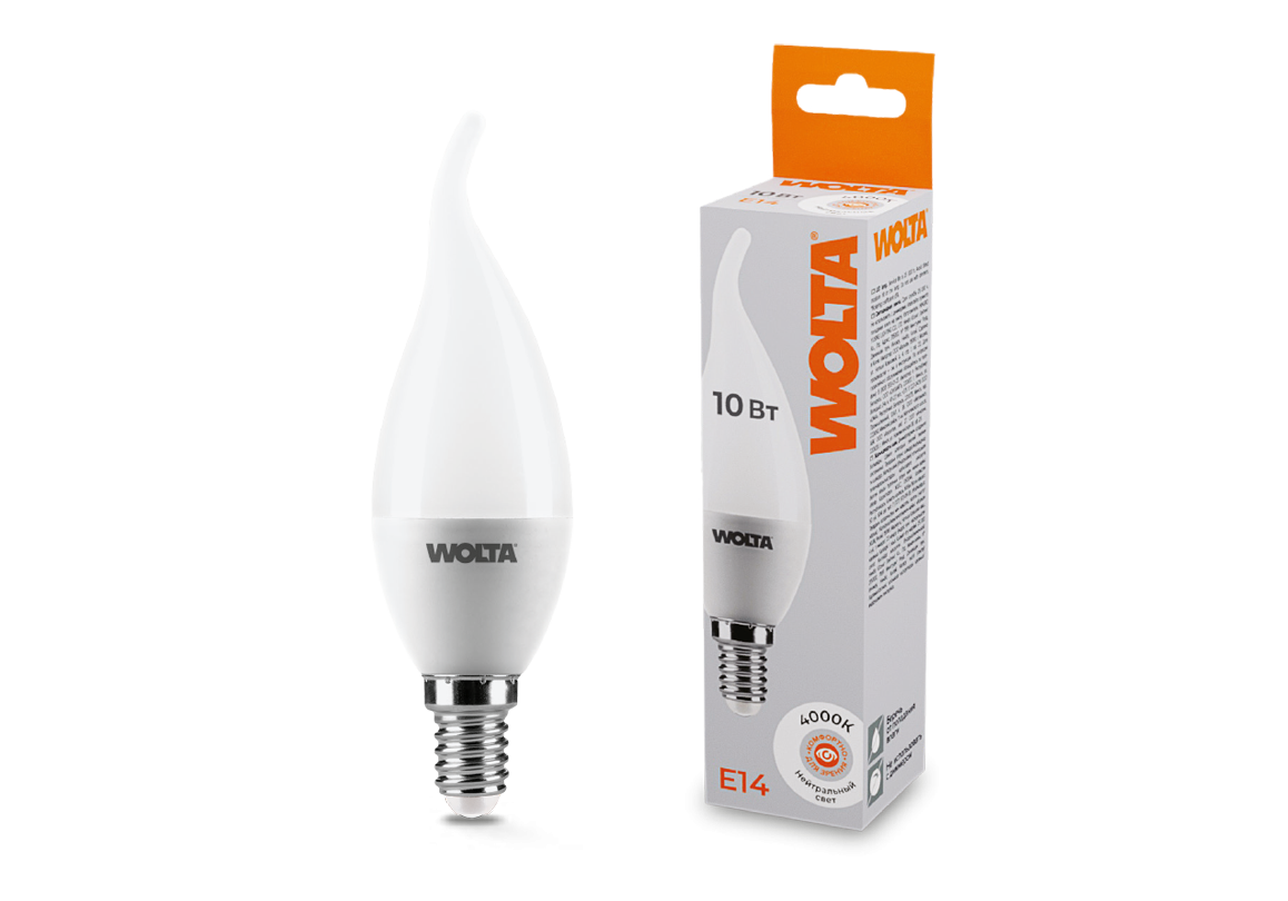 Светодиодная лампа WOLTA 10Вт 4000K E14 свеча на ветру матовая 25SCD10E14