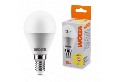 Светодиодная лампа WOLTA 12Вт 3000K Е14 груша матовая 25Y45GL12E14