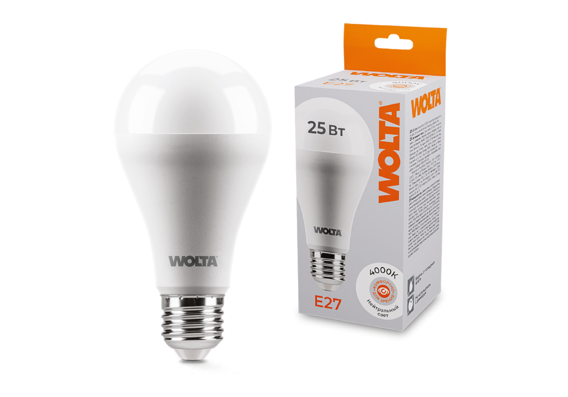 Светодиодная лампа WOLTA 25Вт 4000К E27 груша матовая 25S67BL25E27