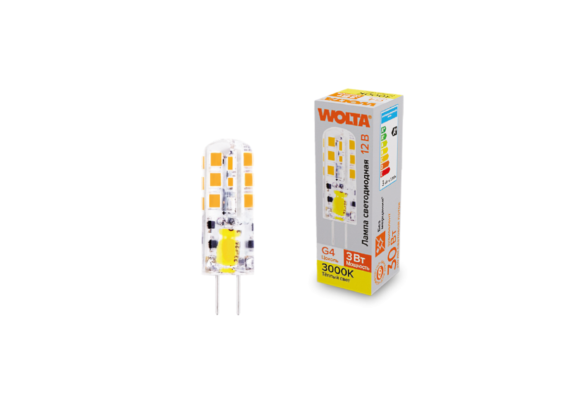Светодиодная лампа WOLTA 3Вт 3000K G4 матовая WSTD-JC-12V3W3KG4-S