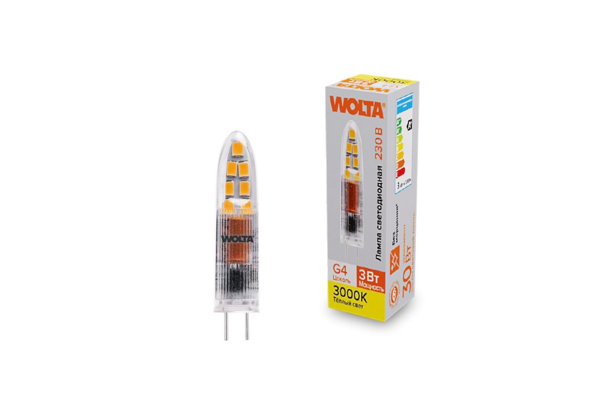 Светодиодная лампа WOLTA 3Вт 3000K G4 матовая WSTD-JC-220V3W3KG4-P