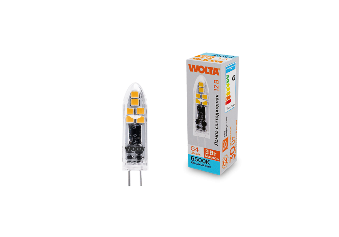 Светодиодная лампа WOLTA 3Вт 6500K G4 матовая WSTD-JC-12V3W6KG4-P
