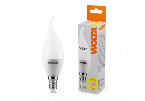 Светодиодная лампа WOLTA 7.5Вт 3000K E14 свеча матовая 25YCD7.5E14