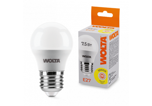 Светодиодная лампа WOLTA 7.5Вт 3000K E27 груша матовая 25Y45GL7.5E27