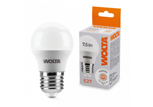 Светодиодная лампа WOLTA 7.5Вт 4000K E27 груша матовая 25S45GL7.5E27