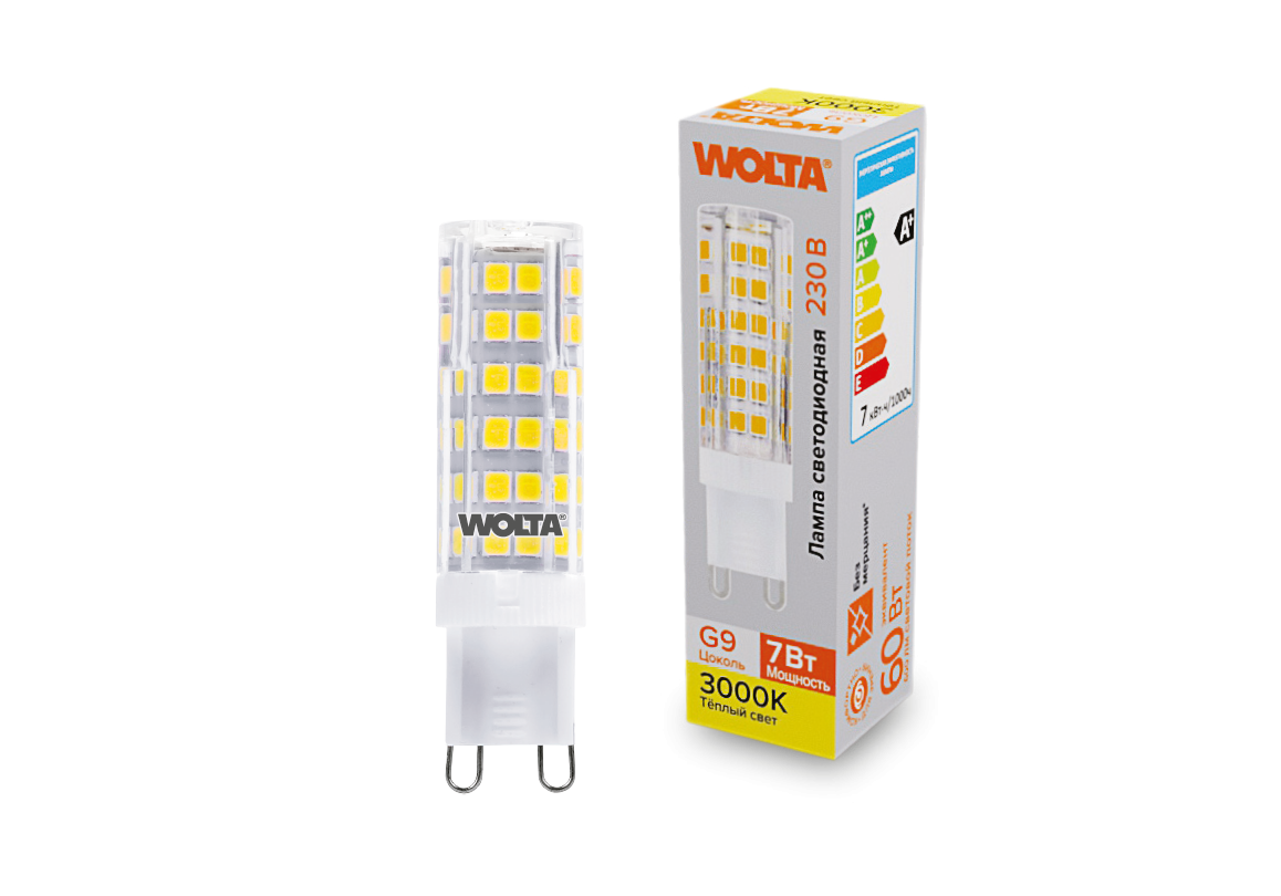 Светодиодная лампа WOLTA 7Вт 3000K G9 кукуруза матовая WSTD-JCD-7W3KG9-C