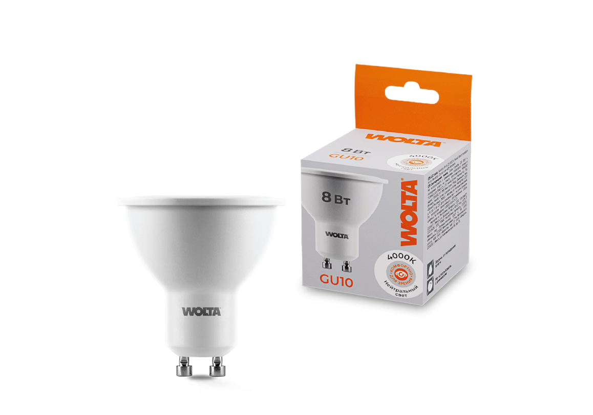 Светодиодная лампа WOLTA 8Вт 4000K GU10 матовая 25SPAR16-230-8GU10