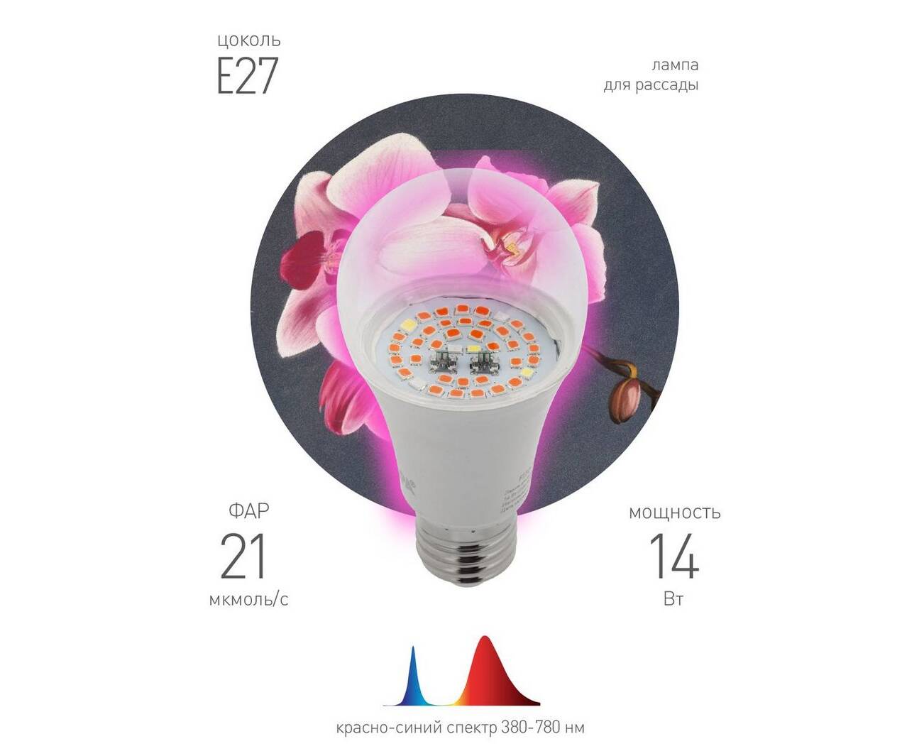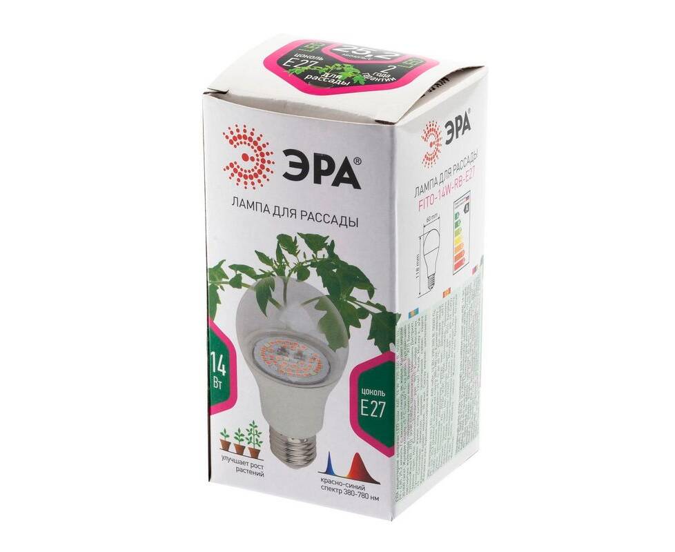 Фитолампа для растений светодиодная ЭРА E27 14W 1310K FITO-14W-RB-E27-K Б0039071