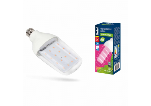 Лампа светодиодная для растений Uniel E27 12W прозрачная LED-B82-12W/SPBR/E27/CL PLP33WH UL-00007647