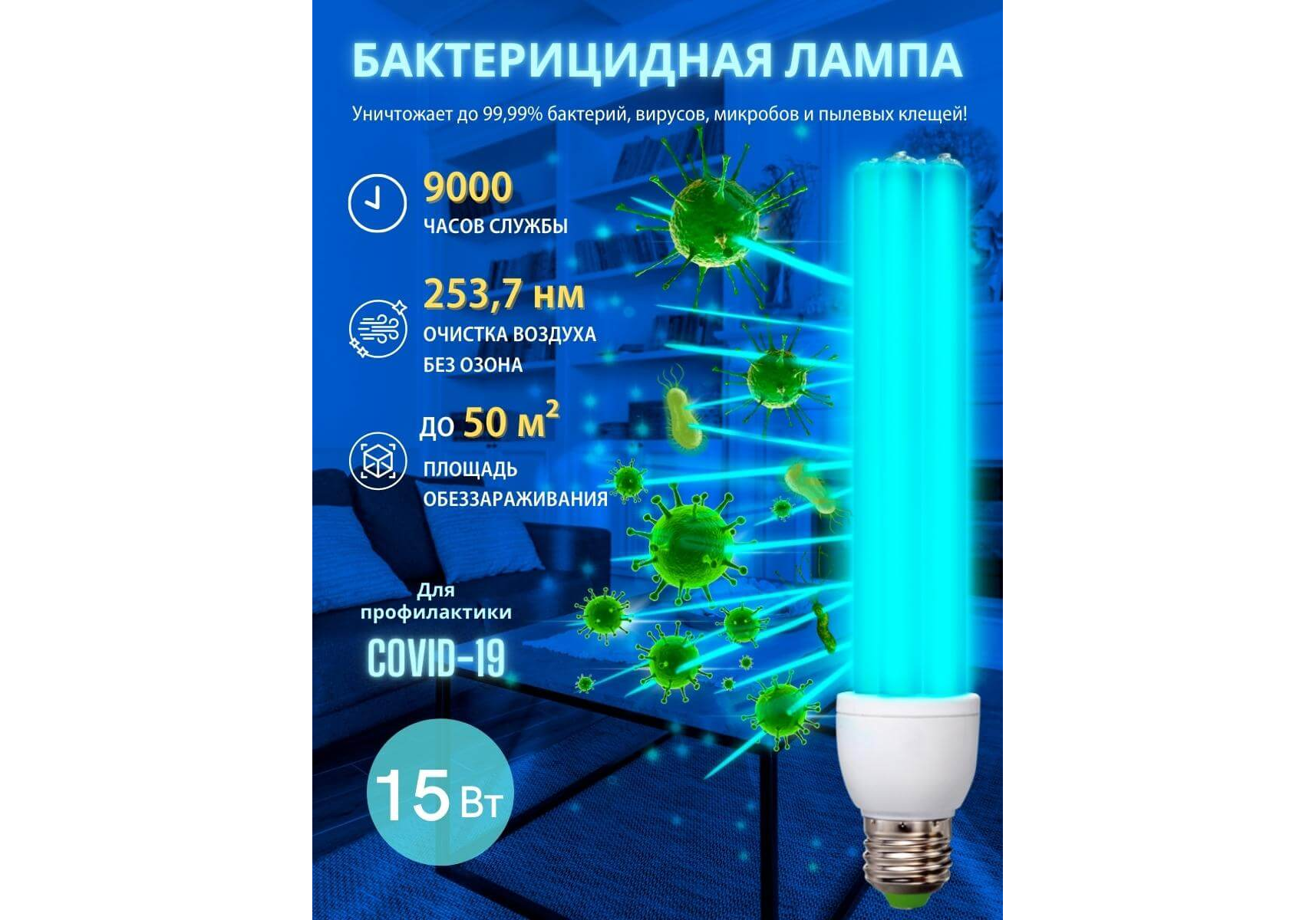 Лампа ультрафиолетовая бактерицидная Uniel E27 15W прозрачная ESL-PLD-15/UVCB/E27/CL UL-00007270