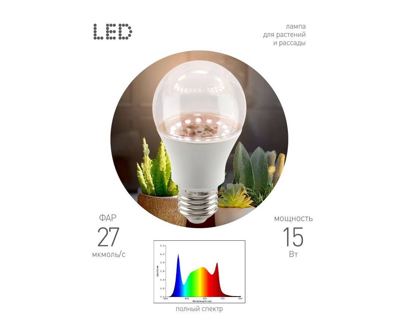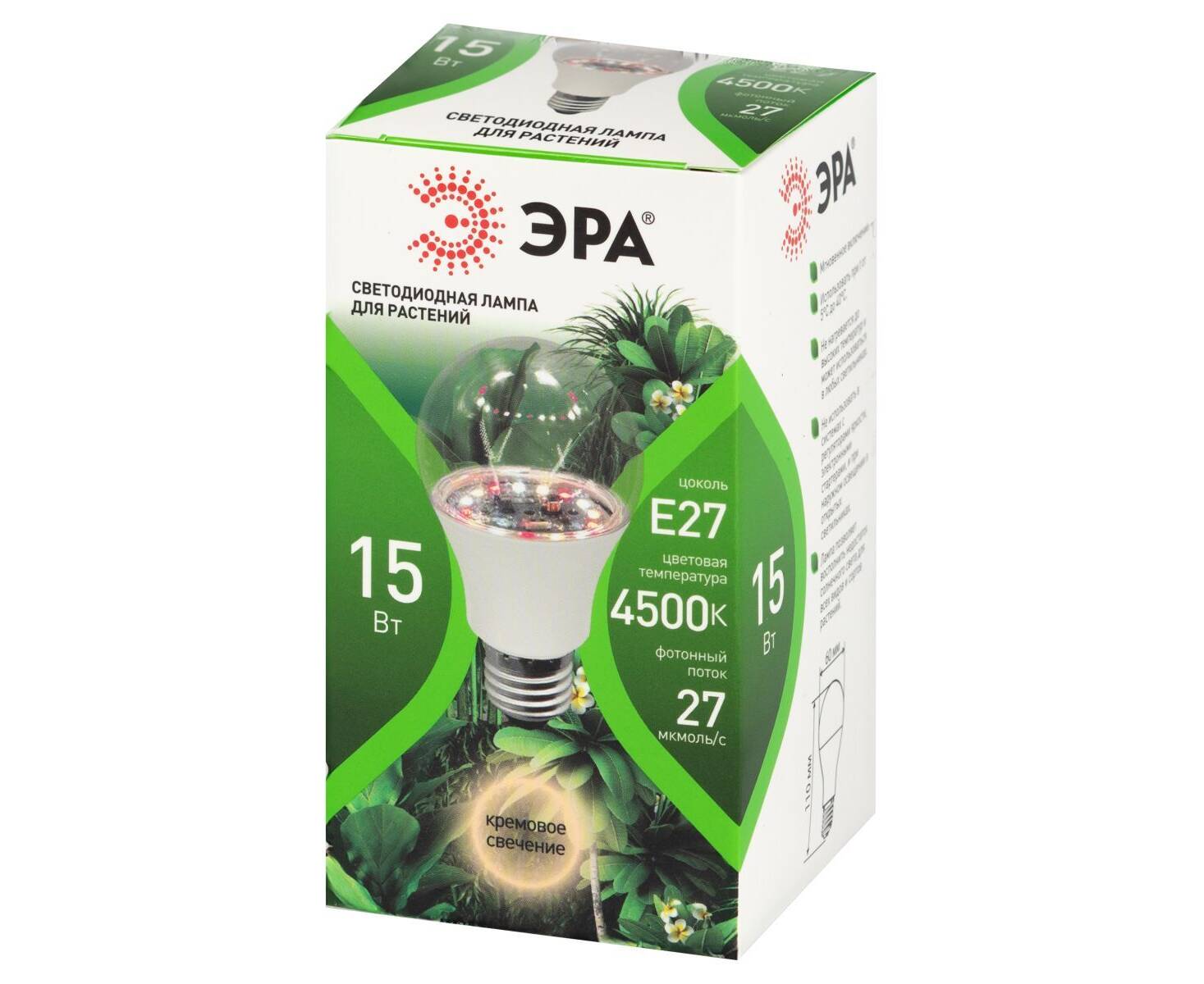 Светодиодная фитолампа для растений Эра ФИТО А60-15W-PFR-E27-GR Б0064527