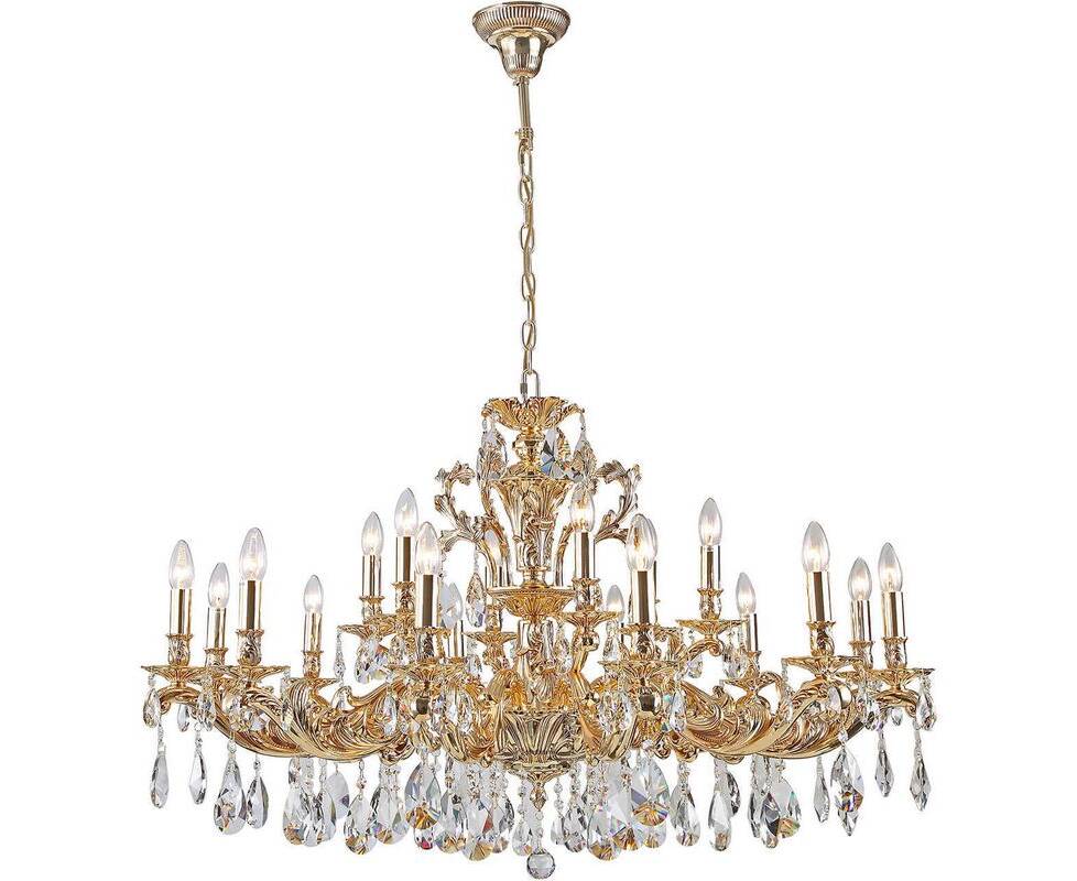 Неповторимая люстра Soprano E 1.1.18.600 CG Soprano от итальянской фирмы Dio D`arte станет изящным центром интерьера больших залов в классическом стиле. Каркас из металла золотого цвета, 18 ламп с цоколем E14 и качественный хрусталь придают данной модели неповторимый внешний вид. Люстра осветит комнату площадью до 21.6 м2, при использовании рекомендуемых производителем или эквивалентных по световому потоку LED ламп (в комплект не входят). Модель Soprano E 1.1.18.600 CG Soprano можно устанавливать на натяжной потолок. *При установке на натяжной потолок допускается использовать только светодиодные LED лампы. Родиной бренда Dio D`arte является ИТАЛИЯ. Заявленный производителем Dio D`arte гарантийный срок составляет 12 месяцев. Подвесная люстра Dio DArte Elite Soprano E 1.1.18.600 CG будет отличным выбором для покупки в интернет-магазине ГиперСвет. Мы оперативно доставим Ваш заказ по Калуге, Москве или в любой другой регион России.