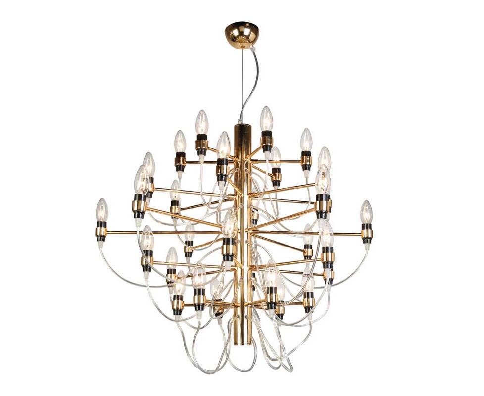 Уникальная люстра 1893-30P Golem от немецкого производителя светильников Favourite будет великолепно смотреться в интерьере больших залов в современном дизайне. Каркас из металла золотого цвета, 30 ламп с цоколем E14 без плафонов придают данной модели уникальный внешний вид. Люстра осветит комнату площадью до 66.7 м2, при использовании рекомендуемых производителем или эквивалентных по световому потоку LED ламп (в комплект не входят). Модель 1893-30P Golem можно устанавливать на натяжной потолок. *При установке на натяжной потолок допускается использовать только светодиодные LED лампы. Родиной бренда Favourite является ГЕРМАНИЯ. Заявленный производителем Favourite гарантийный срок составляет 3 года. Подвесная люстра Favourite Golem 1893-30P будет отличным выбором для покупки в интернет-магазине ГиперСвет. Мы оперативно доставим Ваш заказ по Калуге, Москве или в любой другой регион России.