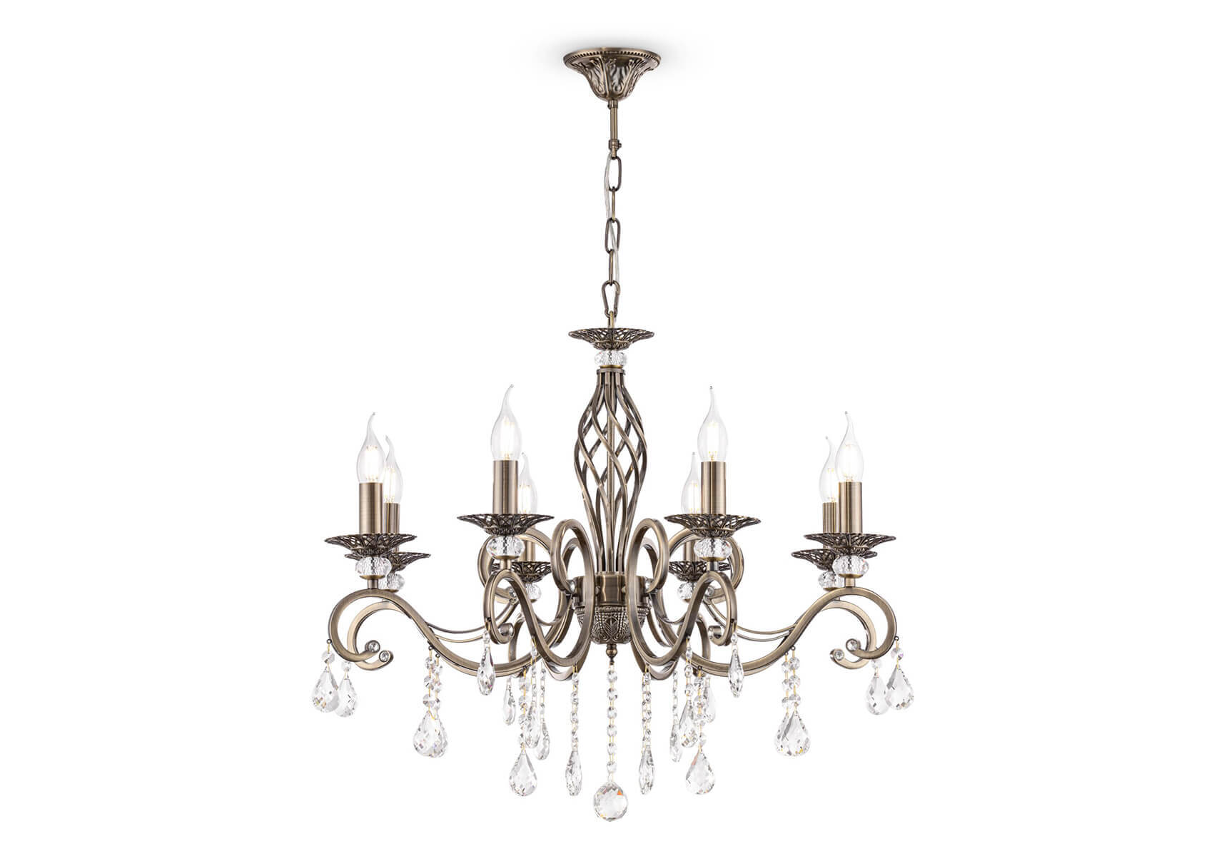 Люстра RC247-PL-08-R Grace от немецкого производителя светильников Maytoni отлично подойдет, например, для гостиной в классическом стиле. Каркас из металла бронзового цвета, 8 ламп с цоколем E14 без плафонов придают данной модели великолепный внешний вид. Производитель рекомендует использовать в данной модели лампы накаливания или эквивалентные по световому потоку светодиодные лампы (в комплект не входят). Модель RC247-PL-08-R Grace можно устанавливать на натяжной потолок. *При установке на натяжной потолок допускается использовать только светодиодные LED лампы. Родиной бренда Maytoni является ГЕРМАНИЯ. Сборочное производство компании расположено в Китае, однако, это никак не сказывается на качестве продукции. Заявленный производителем Maytoni гарантийный срок составляет 2 года. Подвесная люстра Maytoni Grace RC247-PL-08-R будет отличным выбором для покупки в интернет-магазине ГиперСвет. Мы оперативно доставим Ваш заказ по Калуге, Москве или в любой другой регион России.